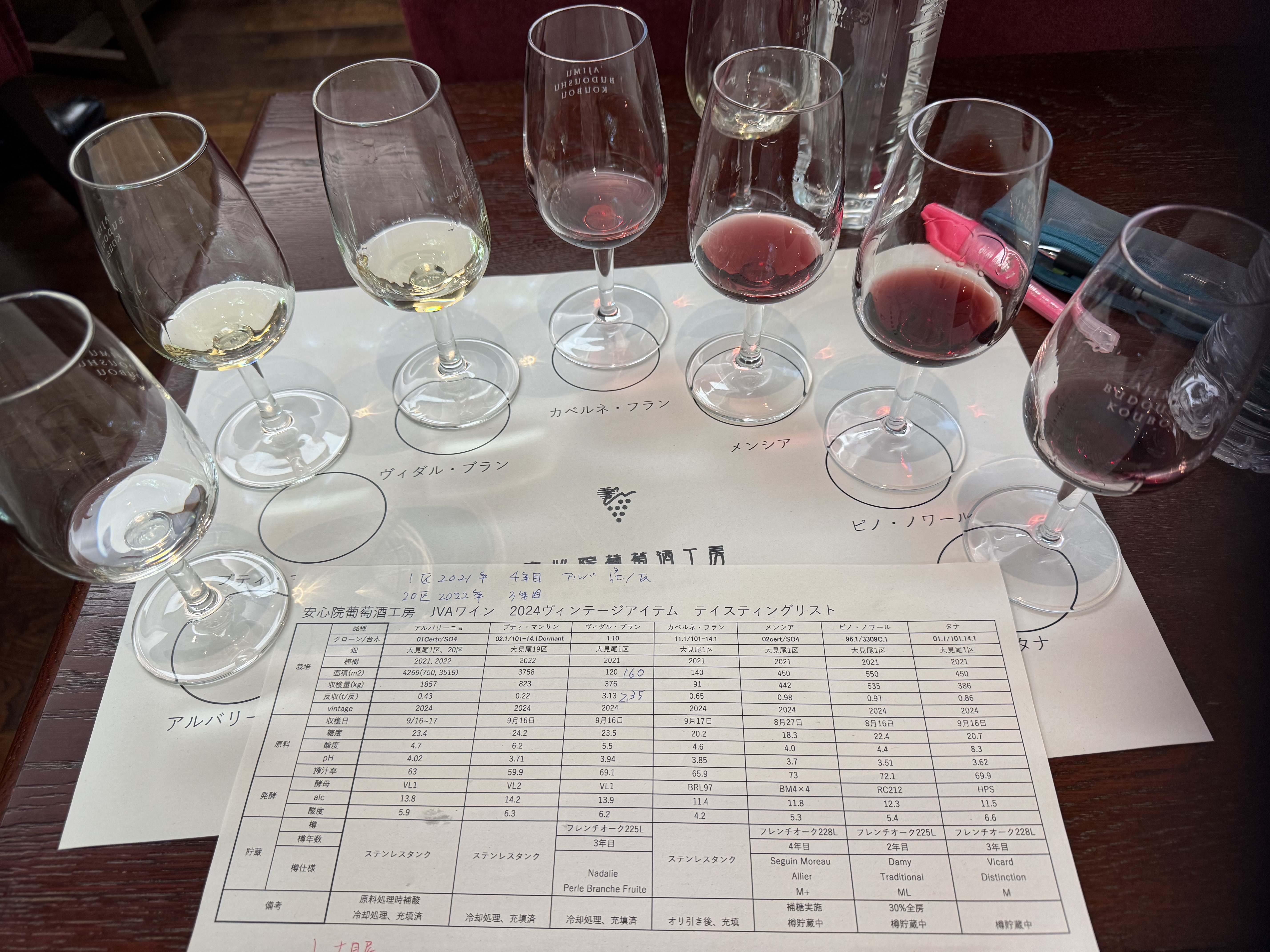 – プティ・マンサン、アルヴァリーニョ、ヴィダル・ブラン、タナ、メンシア、カベルネ・フラン(栽培、醸造:安心院葡萄酒工房)