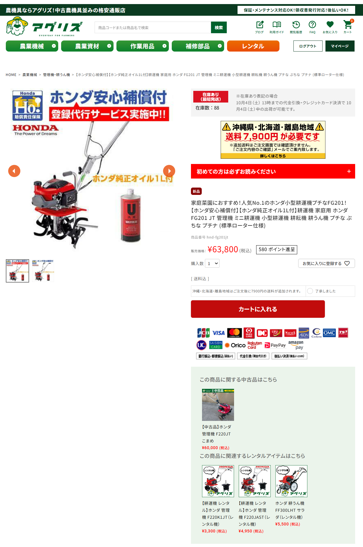 ホーム商品サービス農機具通販サイト『アグリズ』が全面リニューアル 新品5万商品、宅配レンタル100商品以上、中古取扱も拡大予定