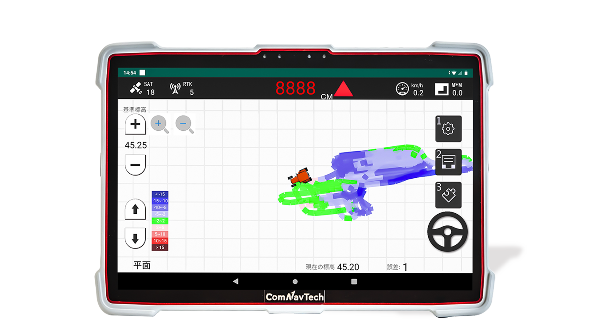 レーザー発光器などの周辺機器が不要で、初期投資と維持コストを大幅に削減できます。さらに、RTKによる±25mm精度を実現した次世代のレベラーです。