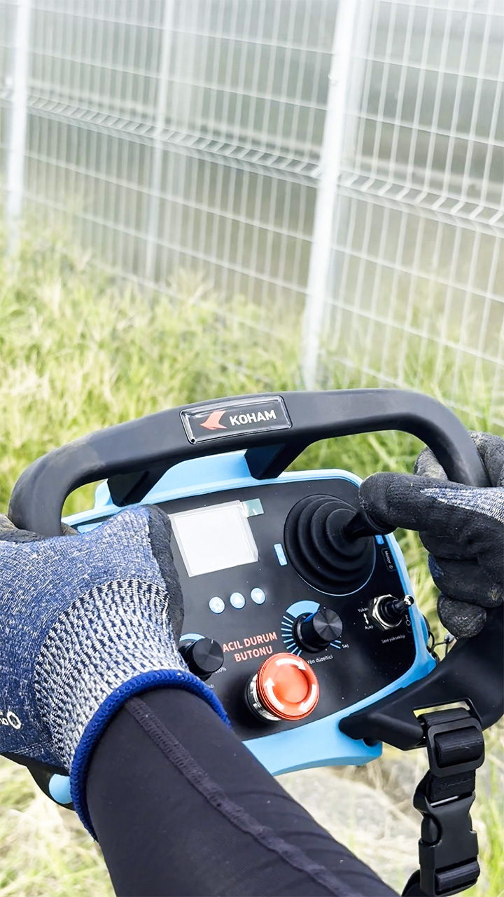 遠隔で草刈りができるラジコン式草刈機です。最大200mの離れた場所からでも安心して作業を行えます。クローラー走行による安定性と、トルクモーターによる力強い刈り性能を両立。最大45°の傾斜地でも作業でき、人が入りにくい場所でも威力を発揮します。さらに、最大約2,000㎡/hの作業能力で、大面積の草刈りを効率的に行えます。