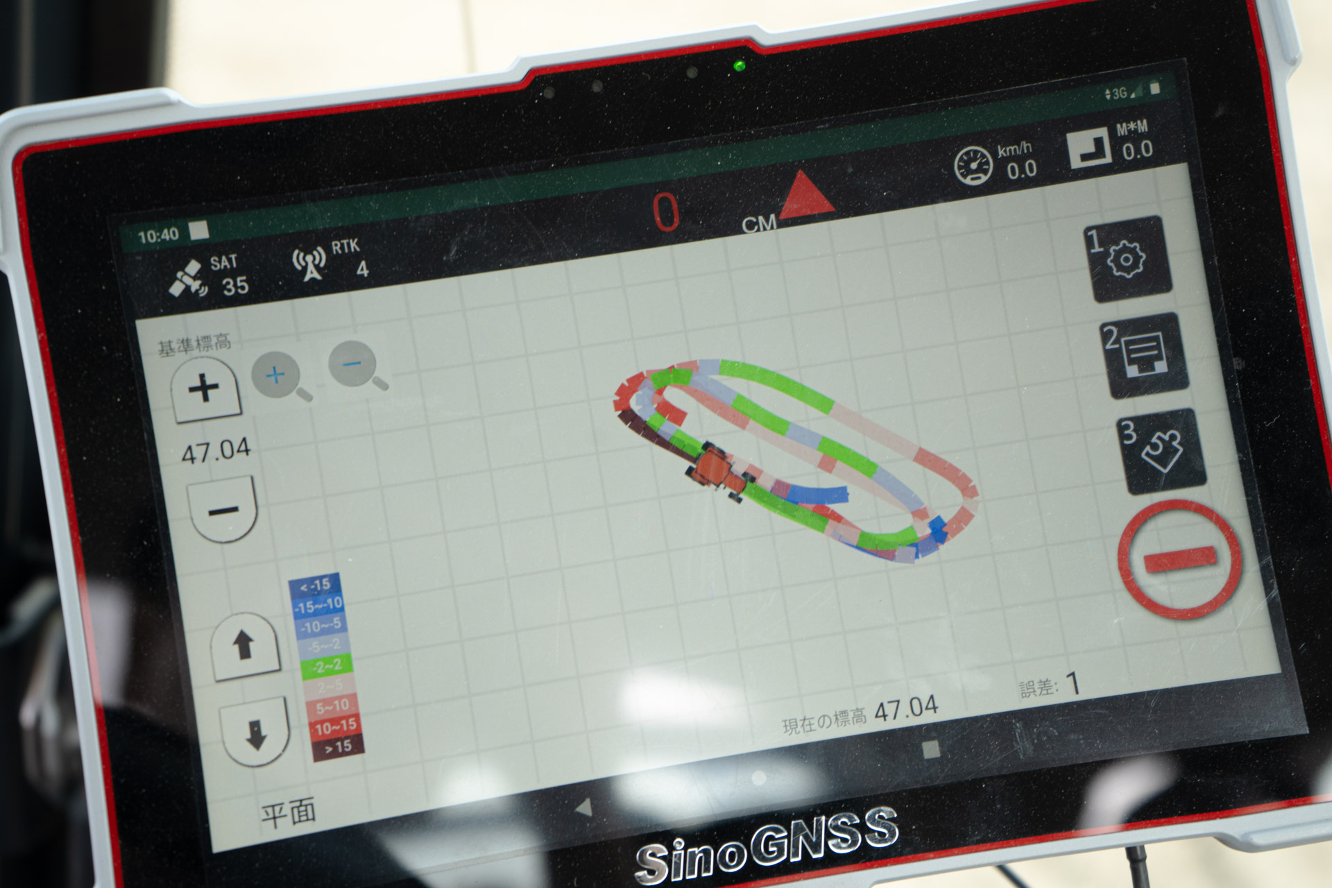 「AL800PRO」は、レーザー発光器を使わずに衛星信号で高さを測定する次世代型レベラーです。RTK(リアルタイムキネマティック)方式により±25mmという高精度な測位を実現。従来必要だった三脚の設置やレーザー発光器のメンテナンスが不要で、コストパフォーマンスにも優れています。また、風や霧などの気象条件や、近隣作業者との混線の影響を受けないため、安定した作業が可能。誰でも簡単・迅速に圃場の均平作業を行うことができます。これにより、従来よりも短時間で効率的な圃場整備を実現し、農業の生産性向上に寄与します。