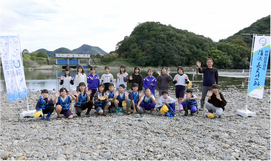 一般社団法人海と日本プロジェクト岐阜は、今年度、岐阜市立藍川北学園と連携してアユを通じた川と海の学習を実施しています。その関連として、11月4日に岐阜市立藍川北学園の6年生が、長良川の伝統漁「瀬張り網漁」について学ぶ体験学習を行いました。アユは岐阜県の県魚であり、平成27年(2015年)12月に「清流長良川の鮎」が世界農業遺産に認定されました。