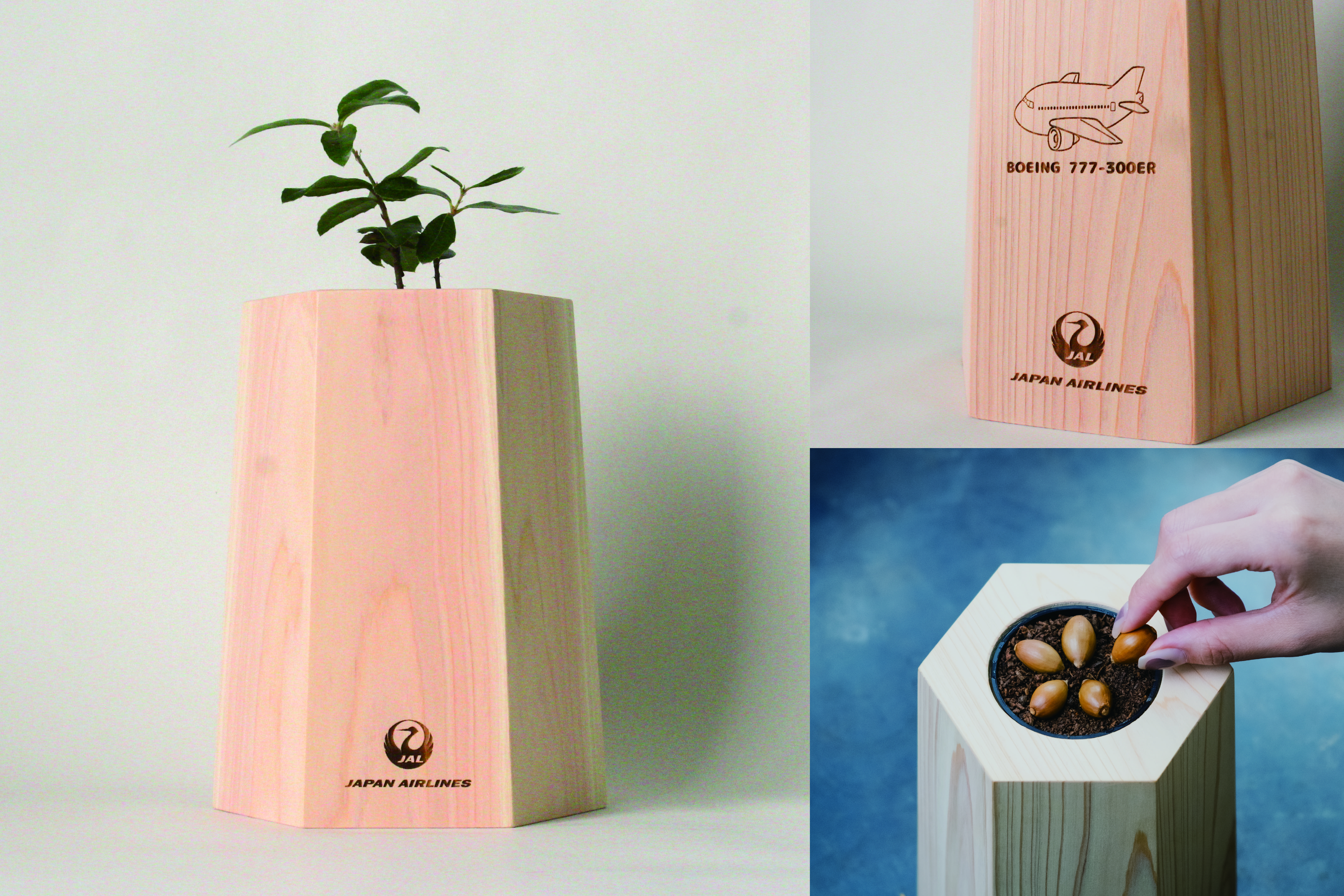 JALグループが運営する、マイルをJALならではの、特別な体験に交換できるサービス「マイル de 体験」にて、JAL限定デザインの「MODRINAE(戻り苗)」を提供します。鶴丸ロゴや機体をモチーフにした3種類のデザインを展開し、育てる時間を通じて“空と森のつながり”を感じていただけます。