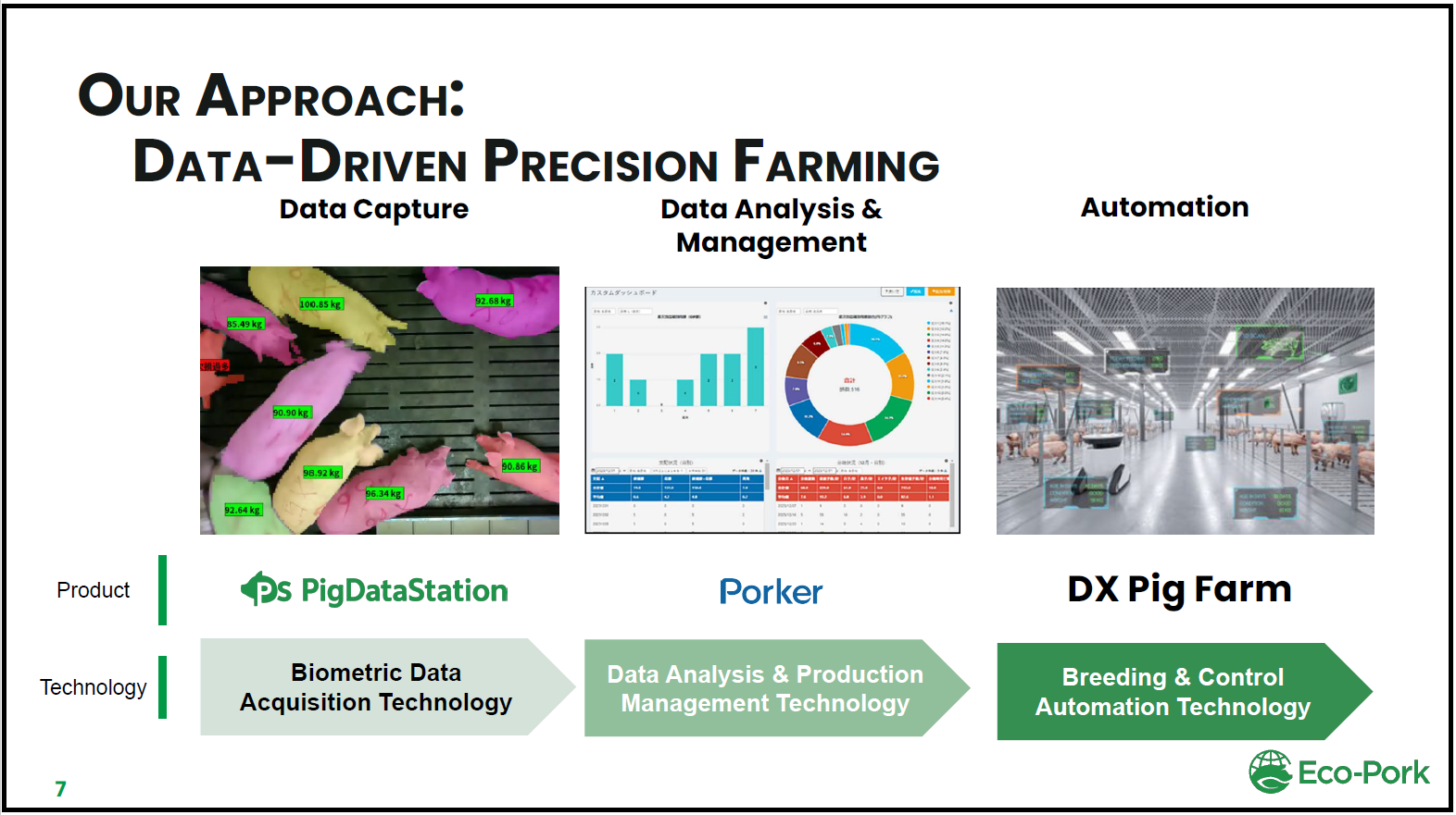 ”次世代に食肉文化をつなぐ”を企業理念に掲げ、世界40兆円市場である養豚の、データによる持続可能化を目指しています。養豚の全てをデータで可視化する養豚経営支援システム 「Porker」および、関連するIoT機器を開発・販売しています。